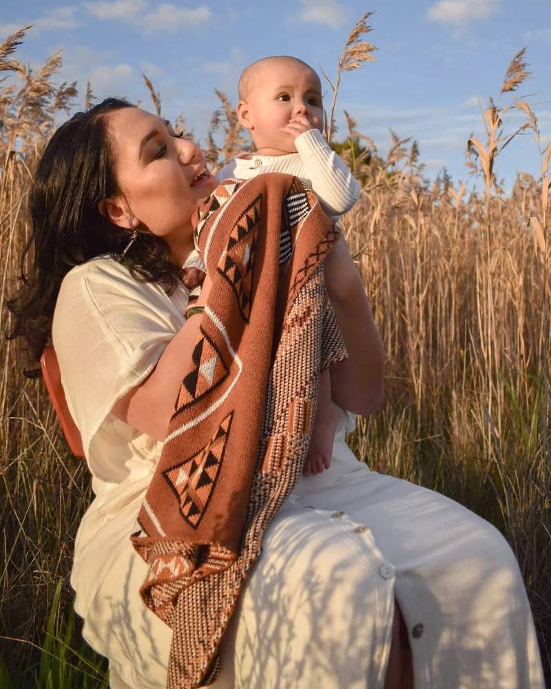 Inspired by the creation story, Kōkōwai contains the very essence of life/creation. It recognises the need to uphold one's identity his/her whakapapa. Soft woven threads knitted together to indulge your pēpi in comfort.